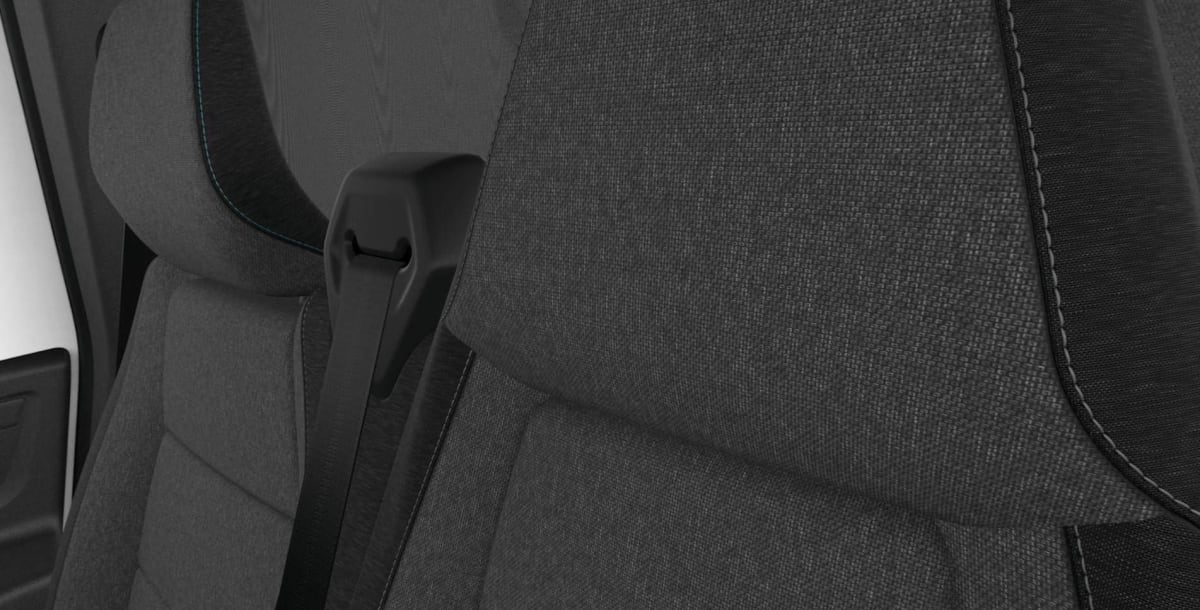 sellerie tissu chiné gris avec surpiqûres bleu + côté d'assise conducteur renforcé en textile enduit