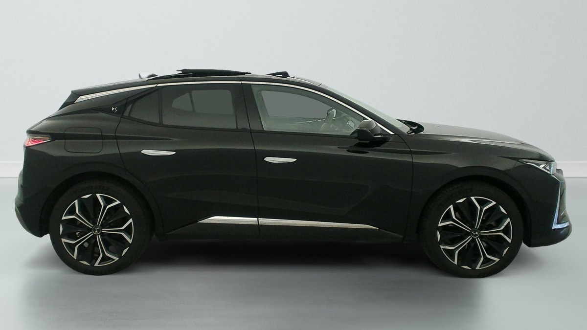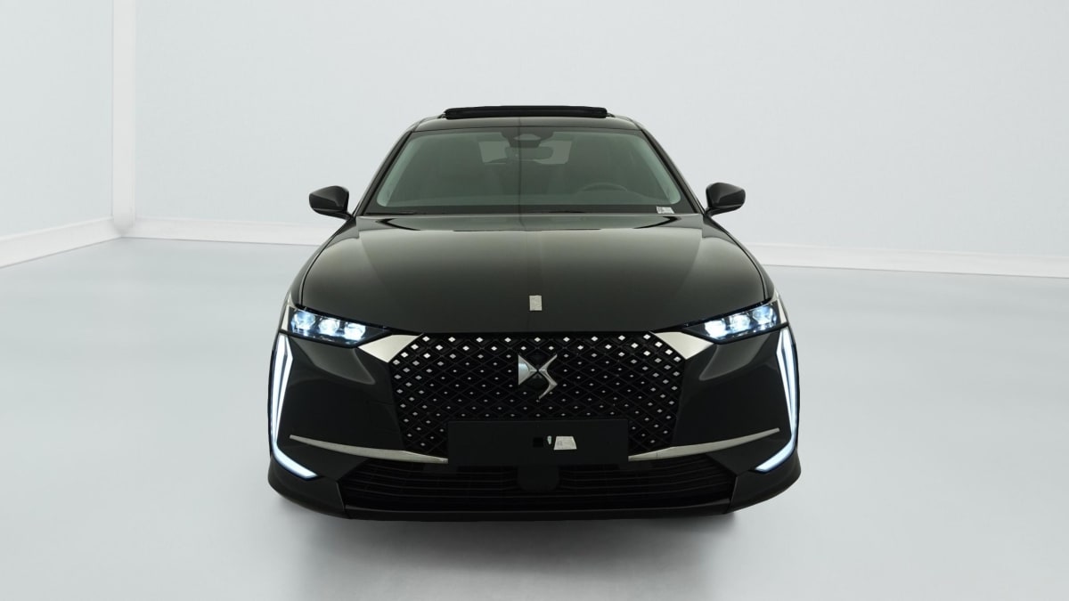 intérieur cuir grainé noir basalte et toile ds : ciel de pavillon clair décors de panneaux de porte chrome guilloché volant en cuir fleur mistral console centrale en toile ds mistral planche de bord en toile ds noir basalte façon écaille panneaux de portes en toile ds noir basalte façon écaille sellerie en cuir grainé noir basalte et toile ds