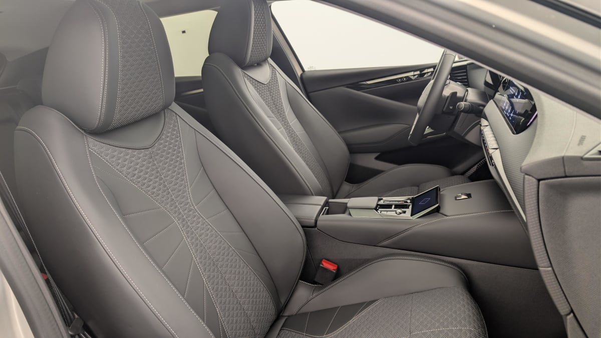 intérieur tissu diamond tungstène avec toile ds noir : ciel de pavillon clair sellerie en tissu diamond tungstène avec toile ds noir décors de panneaux de porte chrome guilloché console centrale en toile ds mistral planche de bord en toile ds noir basalte façon écaille volant cuir fleur mistral panneaux de porte en toile ds noir basalte façon écaille et toile ds noir basalte