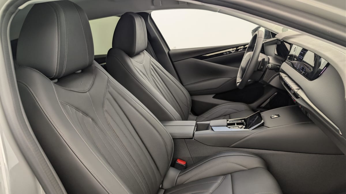 intérieur cuir grainé noir basalte et toile ds : ciel de pavillon clair décors de panneaux de porte chrome guilloché volant en cuir fleur mistral console centrale en toile ds mistral planche de bord en toile ds noir basalte façon écaille panneaux de portes en toile ds noir basalte façon écaille sellerie en cuir grainé noir basalte et toile ds parties centrales des sièges av, partie centrale des sièges latéraux ar et partie av des appuie-tête en cuir. bourrelets latéraux des sièges av, accoudoir central et siège central ar, et parties latérales et ar des appuis tête en toile ds.