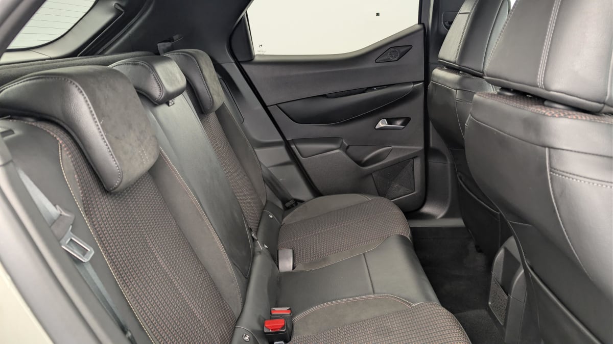 intérieur tissu tressé basalte avec alcantara : planche de bord alcantara noir ciel de pavillon gris galet volant cuir fleur perforé et coutures or et carmin décor alcantara noir siège tissu tressé basalte avec alcantara