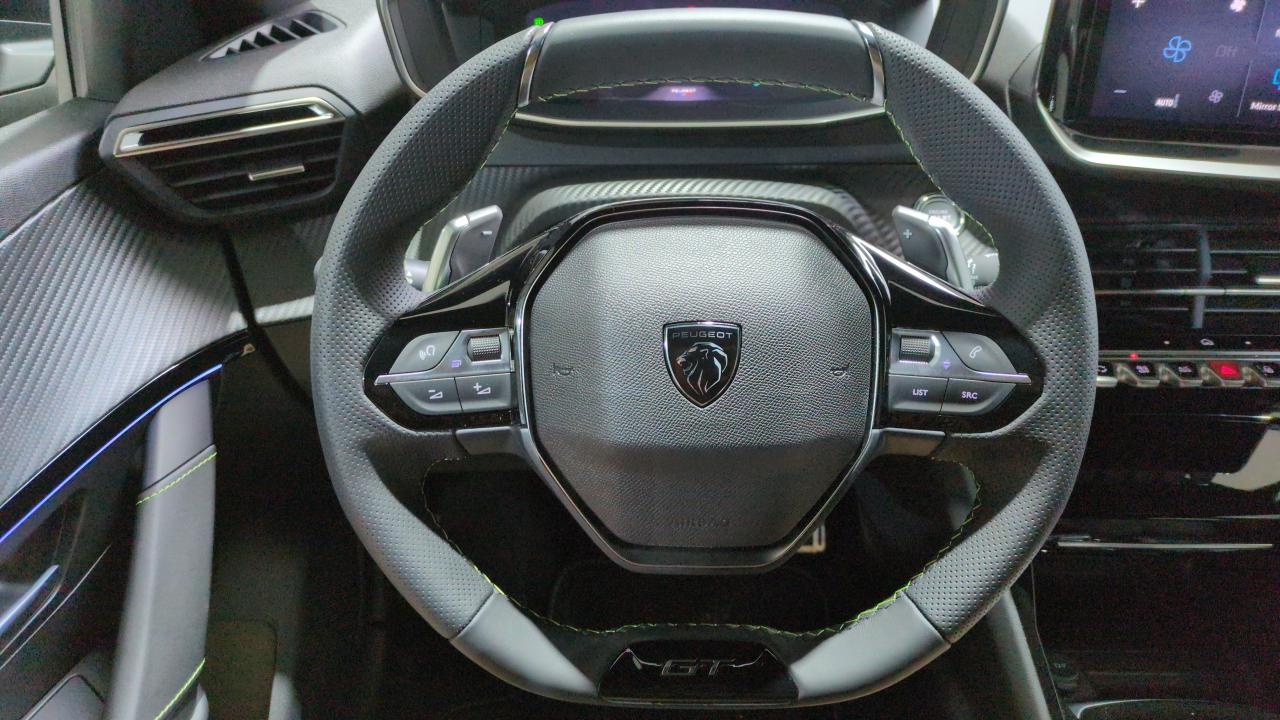 Volant compact cuir fleur avec commandes multimédia intégrées et badge GT