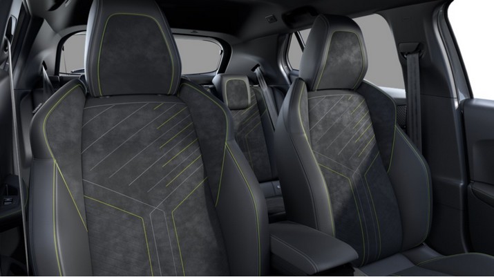 trimatière alcantara noir et surpiqûres vert adamite + siège conducteur à réglages électriques